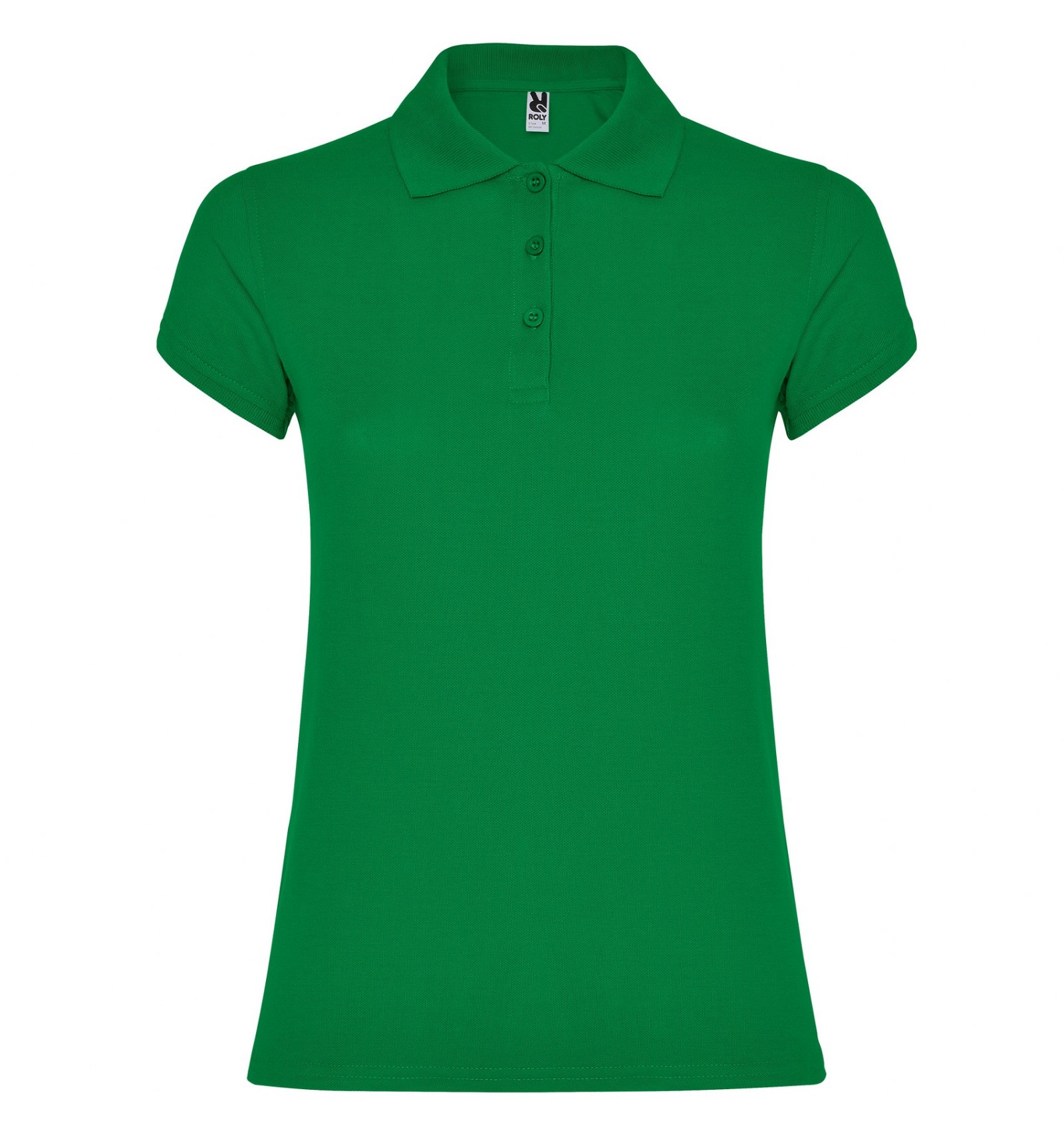 Tricou polo de damă cu mânecă scurtă. Bandă întărită pentru acoperirea cusăturii la guler. Guler și manșete canelate. Croială cambrată și cusături laterale. Fantă cu trei nasturi. Șlițuti laterale.