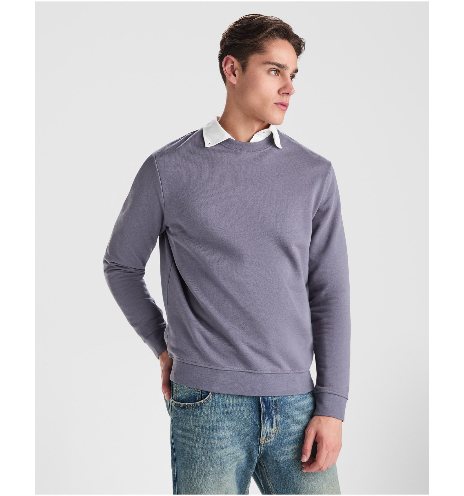 Hanorac din bumbac cu un design clasic. Guler, manșete și talie în canalé 1x1. Bandă întărită pentru acoperirea cusăturii la guler.