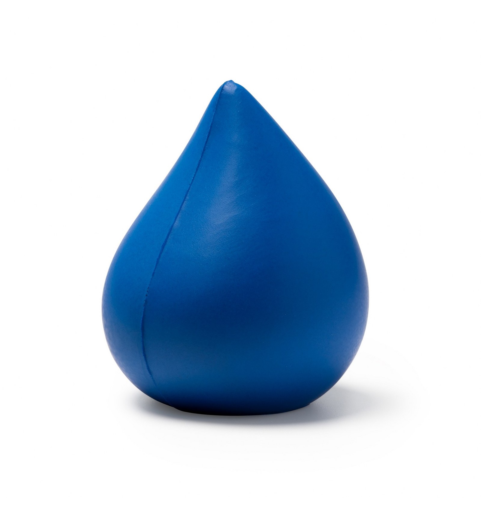 Descriere:Minge antistres în formă de picătură, de culoare naturală, din poliuretan.