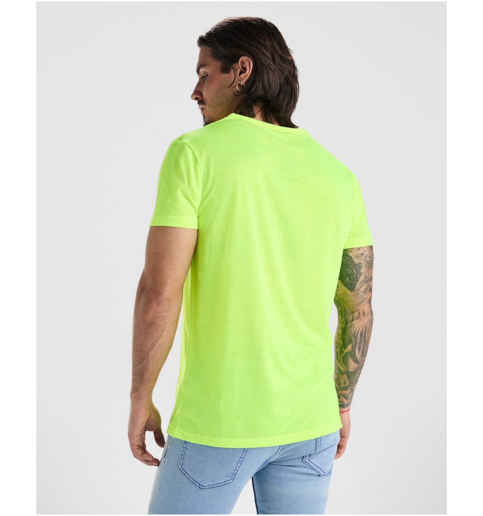 Tricou cu mânecă scurtă în culori fluorescente. Guler rotund și bandă întărită pentru acoperirea cusăturilor la interior. Fabricat din poliester însă de tact bumbac.