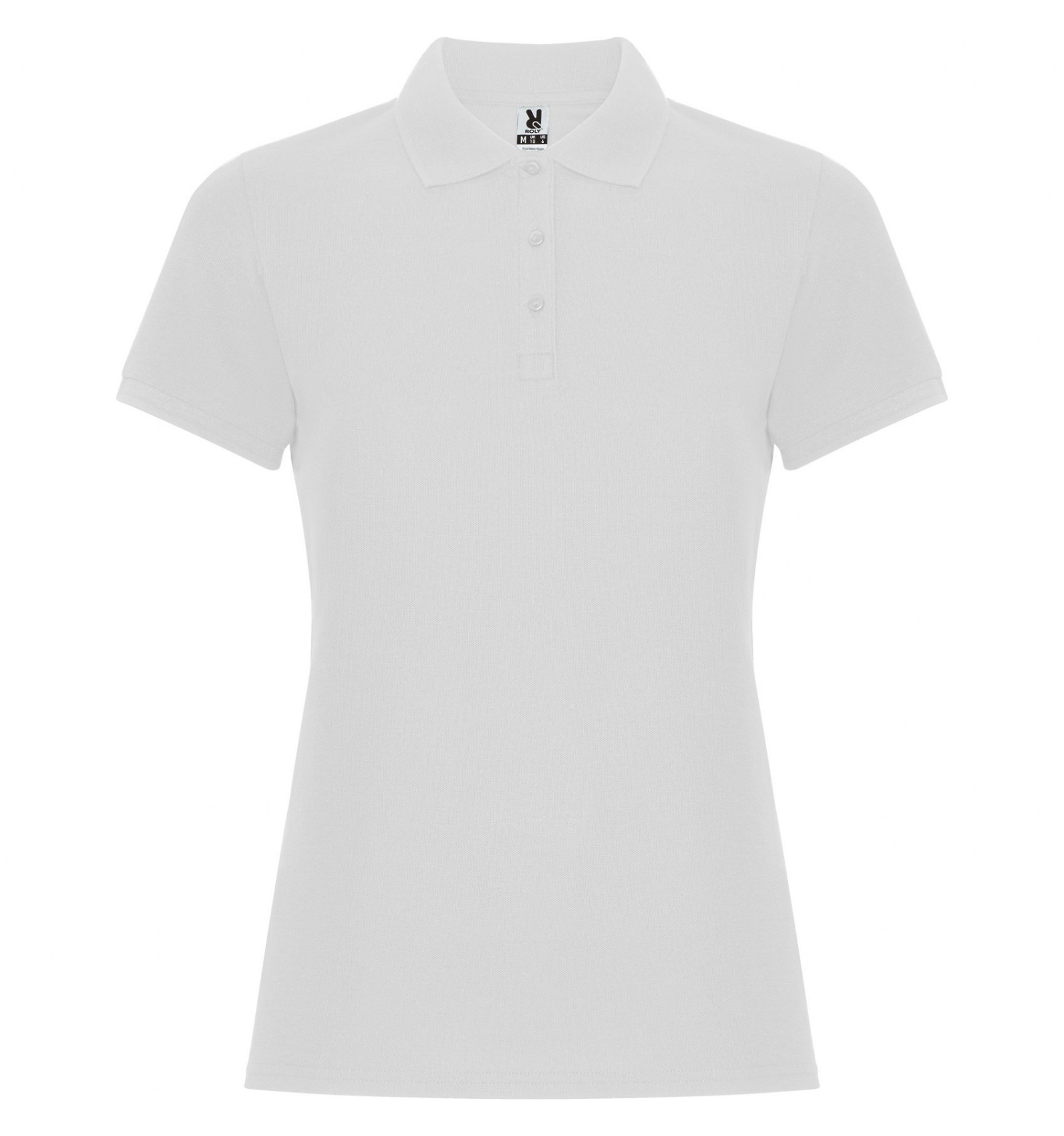 Tricou polo de damă cu mânecă scurtă. Guler și manșete din tricot. Fantă cu 3 nasturi. Bandă întărită pentru acoperirea cusăturii la guler și șlițuri laterale.