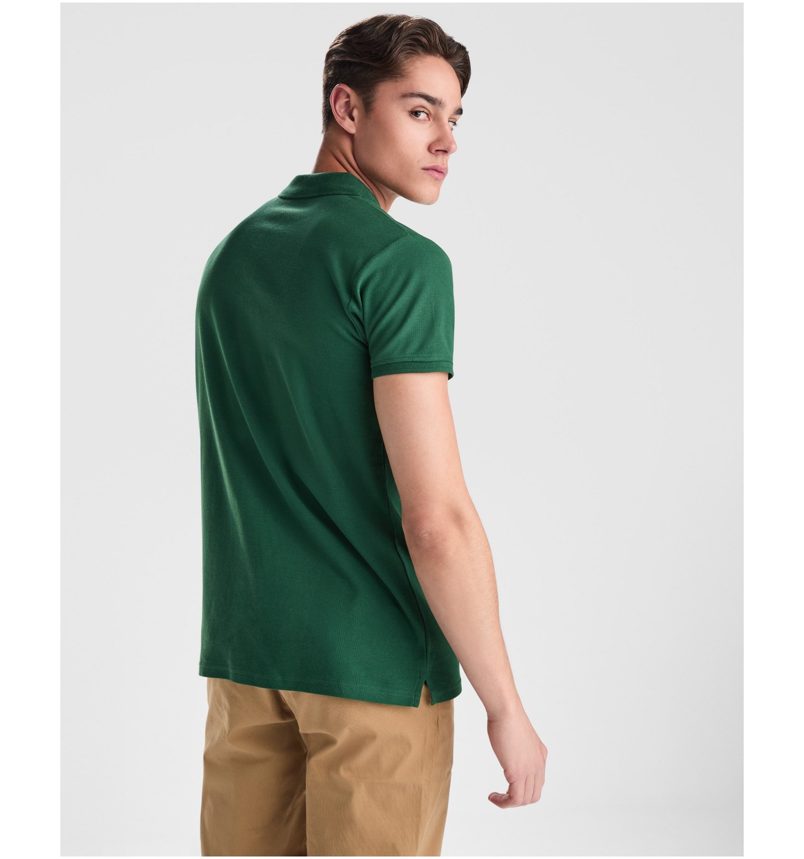 Tricou polo cu mânecă scurtă din bumbac ecologic certificat OCS. 1x1 guler și manșete cu striații. Buzunar cu 2 nasturi. Cusături acoperite întărite la guler. Fante laterale pe tiv. Buzunar opțional.