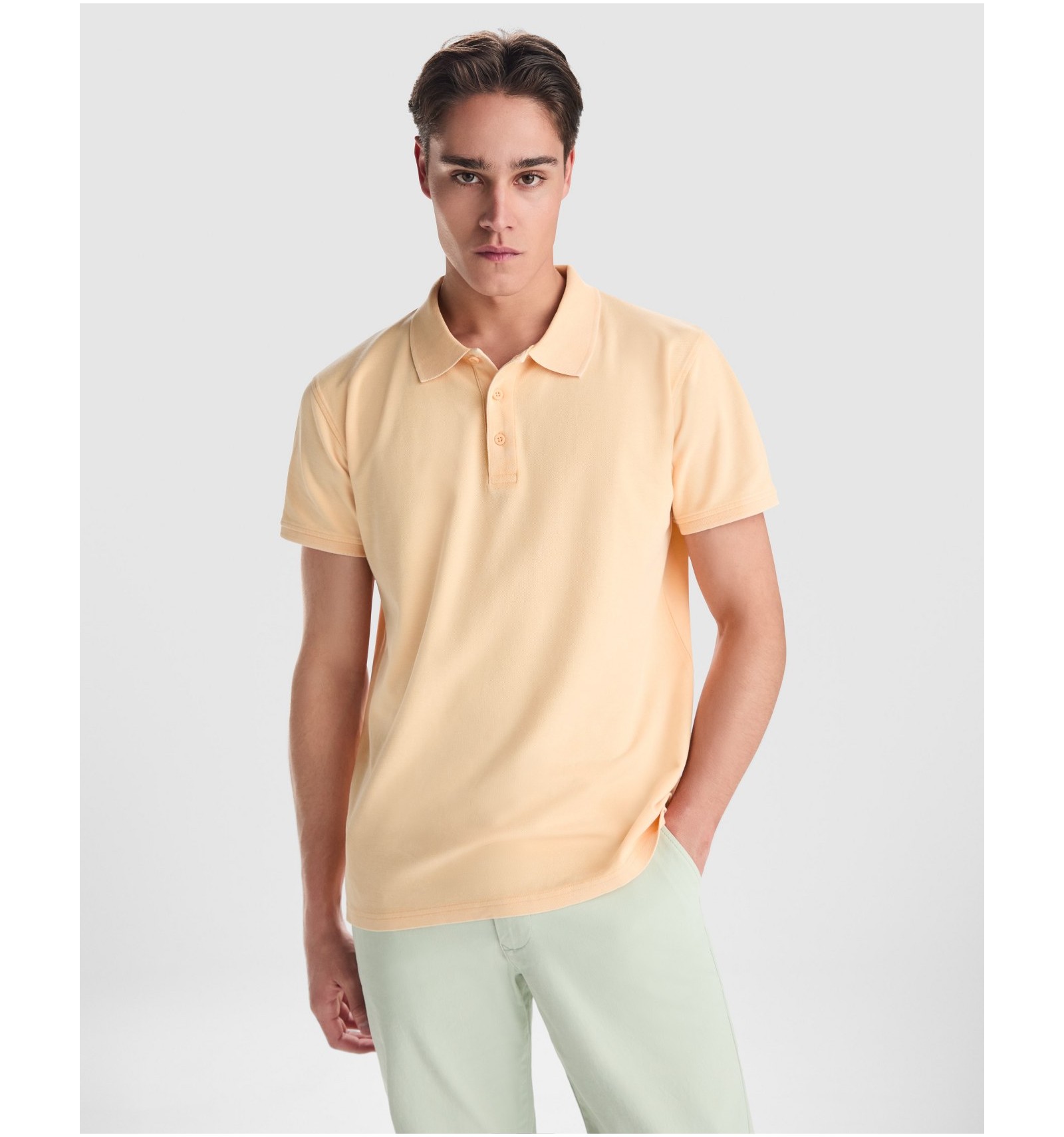 Tricou polo unisex cu mânecă scurtă. Cusătură pique. Guler și mâneci țesute 1x1.