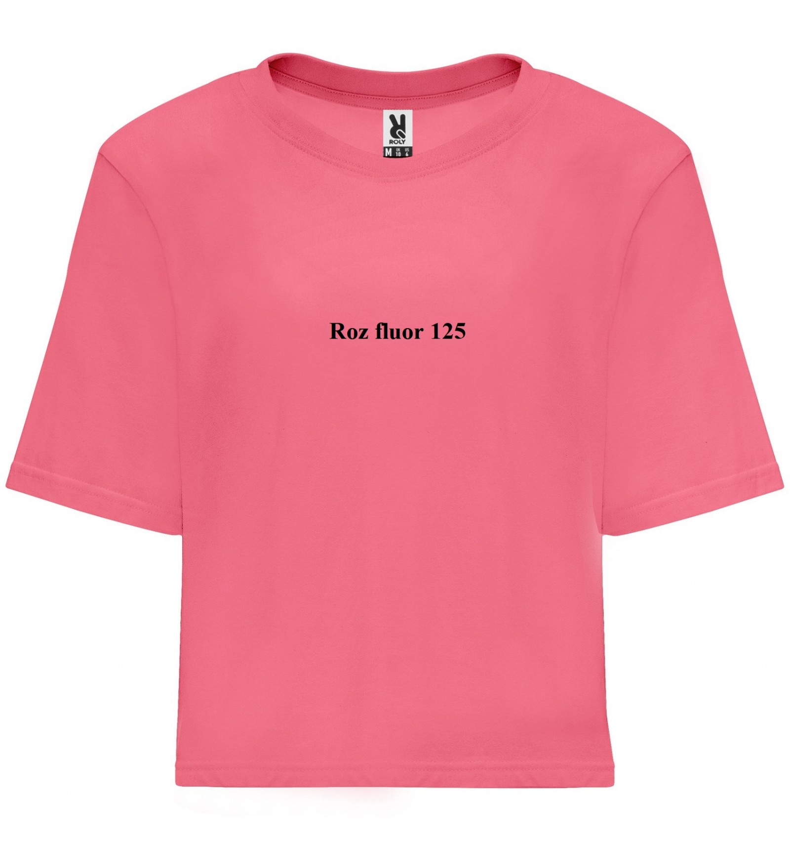 Tricou larg de damă cu mânecă scurtă. Guler rotund cu bordură lată în canalé 1x1. Bandă întărită pentru acoperirea cusăturilor de aceeași culoare.