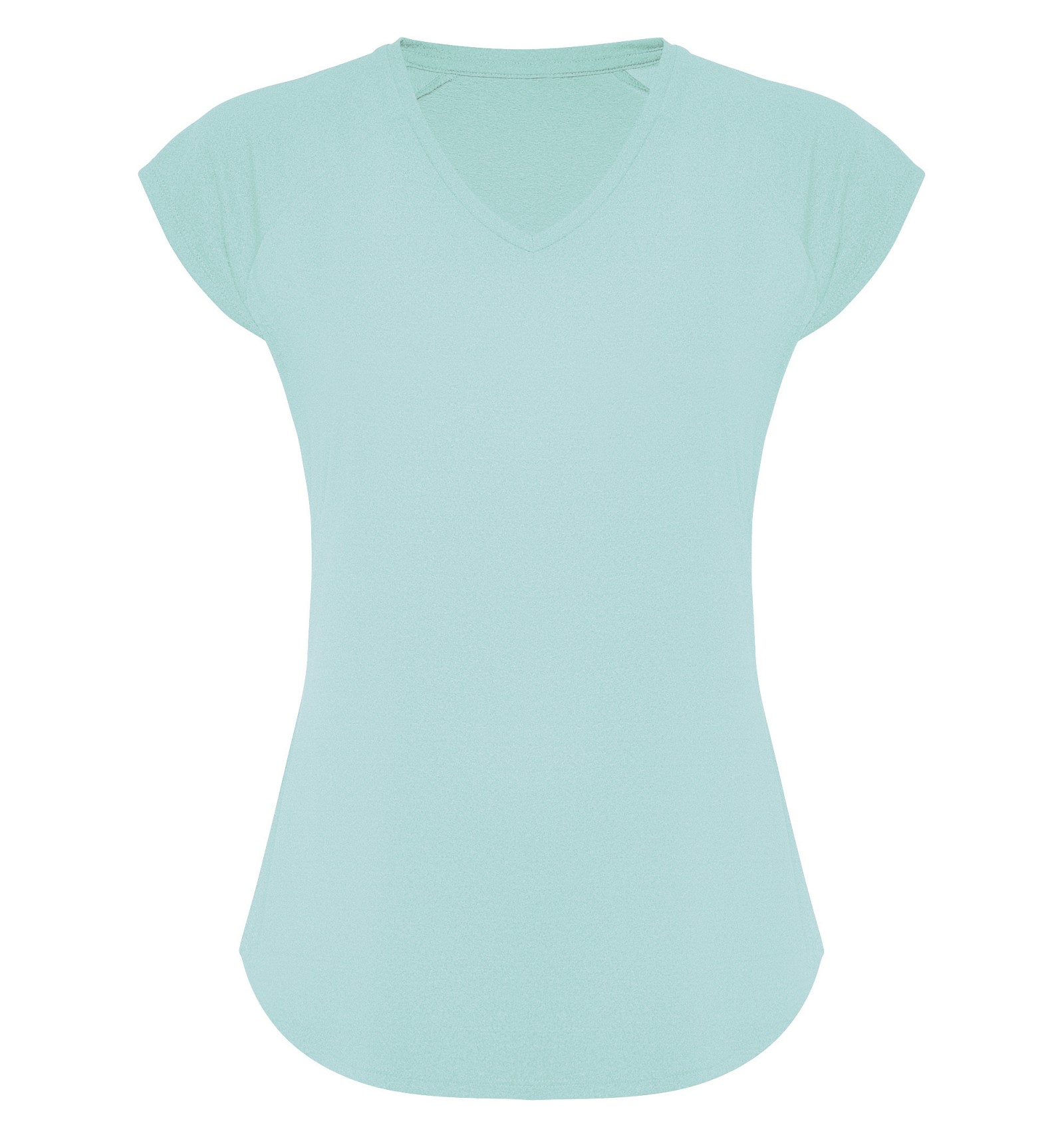 Tricou tehnic multisport și mâneci raglan. Decolteu în V. Țesătură din poliester cu atingere de bumbac. Croială cambrată. Tiv rotund. Cusături overlock asortate pe tiv și mâneci.
