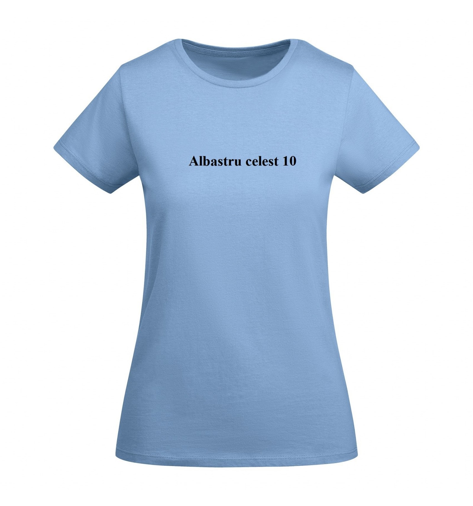 Tricou cambrat cu mânecă scurtă de damă din bumbac ecologic certificat OCS. 1x1 decolteu rotund cu striații.