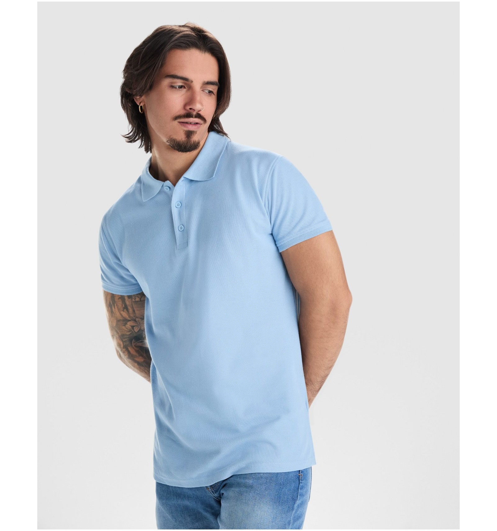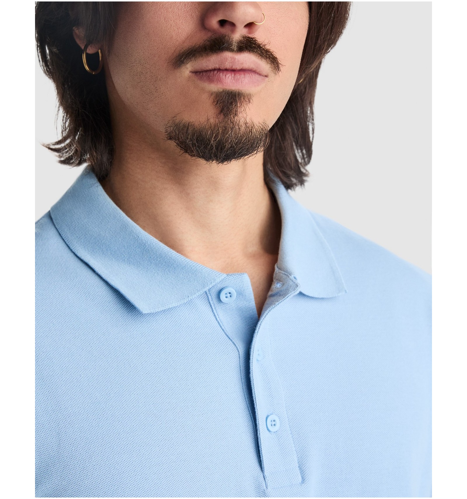 Tricou polo de bărbat cu mânecă scurtă. Bandă întărită pentru acoperirea cusăturii la guler. Guler și manșete canelate. Cusături laterale. Fantă cu trei nasturi. Șlițuti laterale.